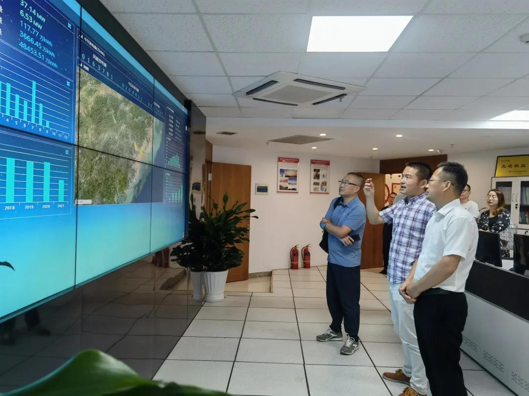 调研组走访了能源公司各个职能部室,实地参观了公司风光一体化监测系统,询问了风电、光伏等新能源项目的相关重点数据,了解各项目运营情况。