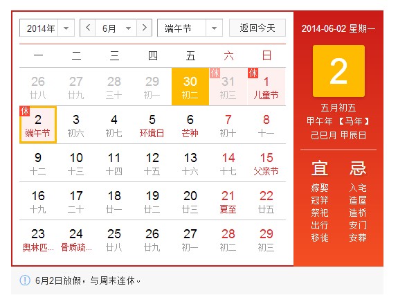 2014年端午节放假通知