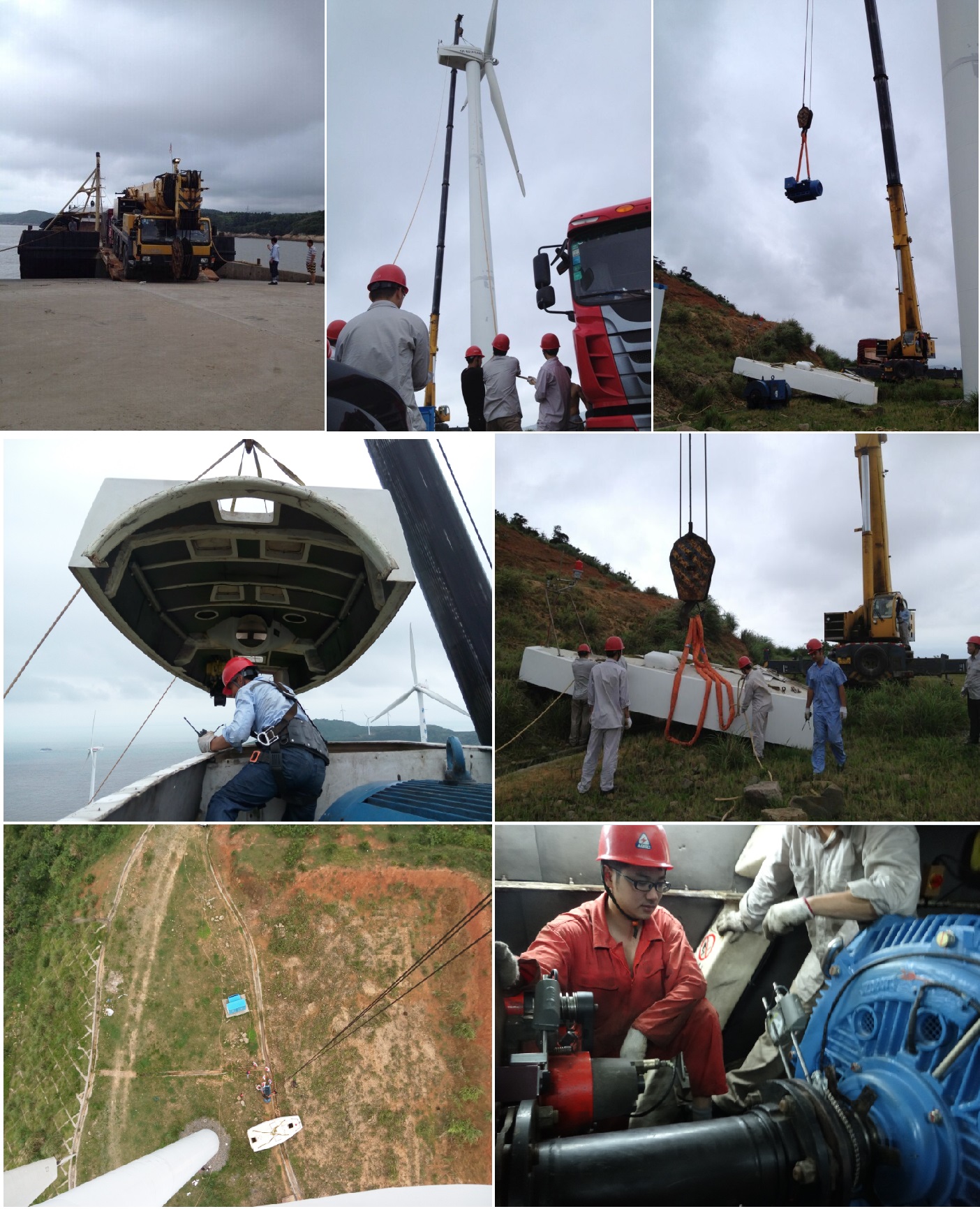 7月23日温州新能源下属苍南霞关风电场#8风机在运行中主控开跳闸,检查发现发电机出现三相绕组不平衡与绝缘低故障,初步分析为绕组匝间短路,经过瓯越检修公司的检测确定为发电机内部匝间短路,此类故障须将发电机吊下返厂维修。苍南霞关风电场地处海岛,交通非常不便,更换发电机需用130吨吊机在50米的高空吊装作业,普通渔船无法运送该型吊机,通过多方努力寻找和联系后,找到一艘在附近作业的平板船,为吊机和发电机海上运输降低了成本。780kW风机机型较老,发电机厂家已无库存,最后通过华仪风能联系上一台相同机型的发电机,并经过多次沟通和协调后确定了购买协议。